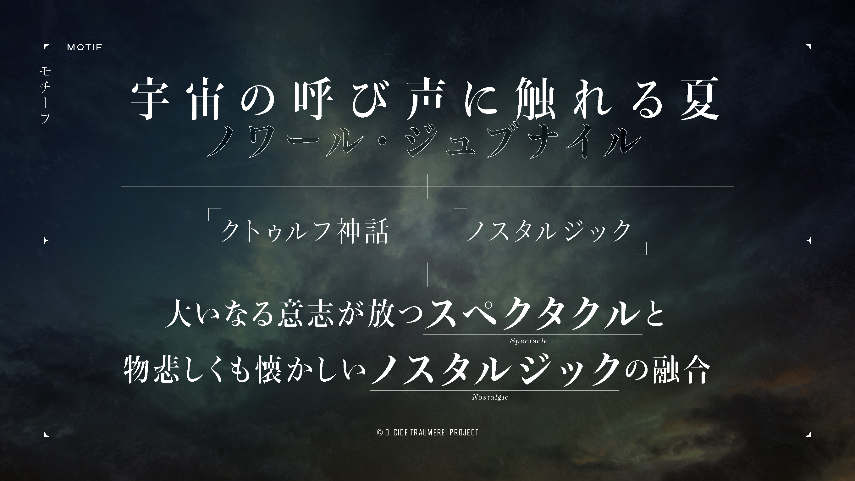 少しずつ異変に侵食されていく日常と、万物の理をも超越した『古きもの』との関わりを描く、夢と希望にあふれる少年少女、そしてかつて夢を見続けた大人たちの物語。