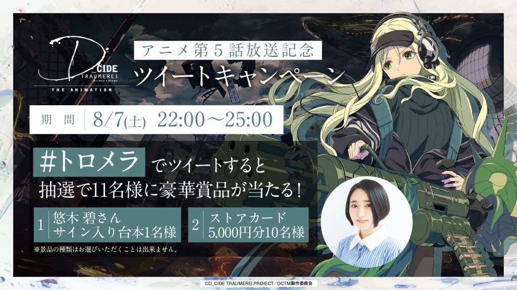 TVアニメ「D_CIDE TRAUMEREI THE ANIMATION」第5話の放送開始を記念して、ジェシカ・クレイボーン役 悠木 碧さんのサイン入り台本とストアカードが当たるTwitterキャンペーンを開始いたしました!