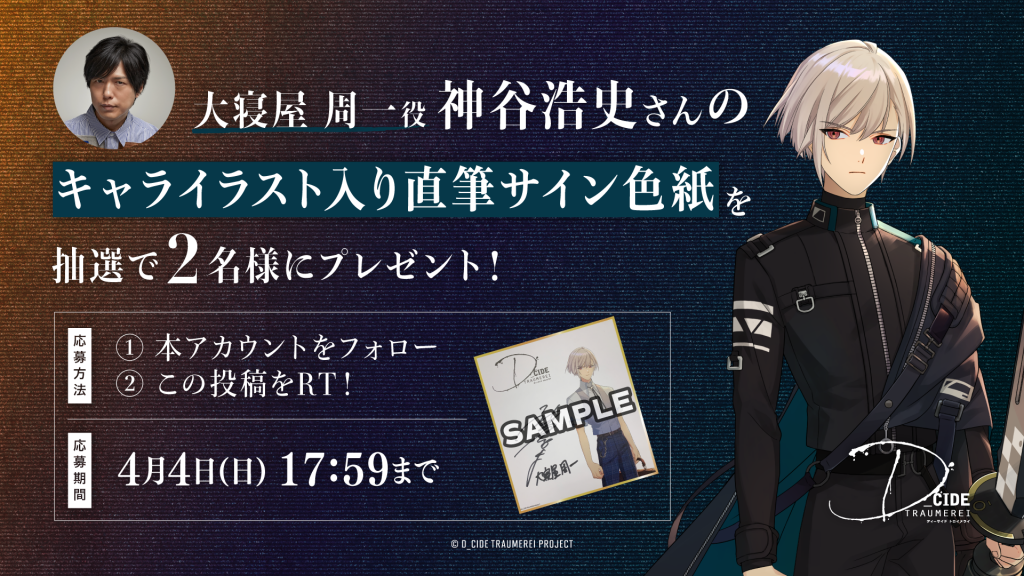 大寝屋周一役 神谷浩史さんのサイン色紙が抽選で2名様に当たるTwitterキャンペーンを開始しました!